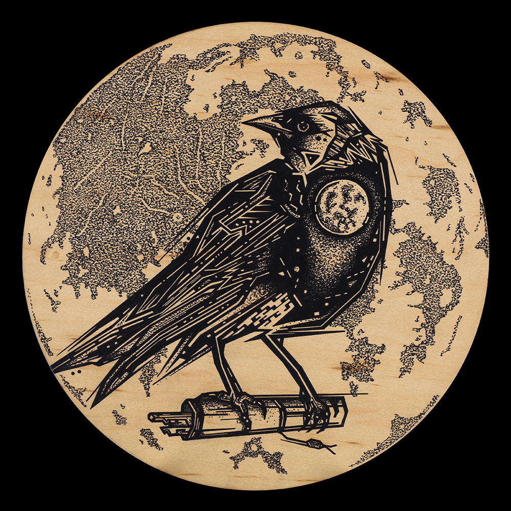 - Printed on textured Aurora White paper and hand mounted onto black, circular wood panel.