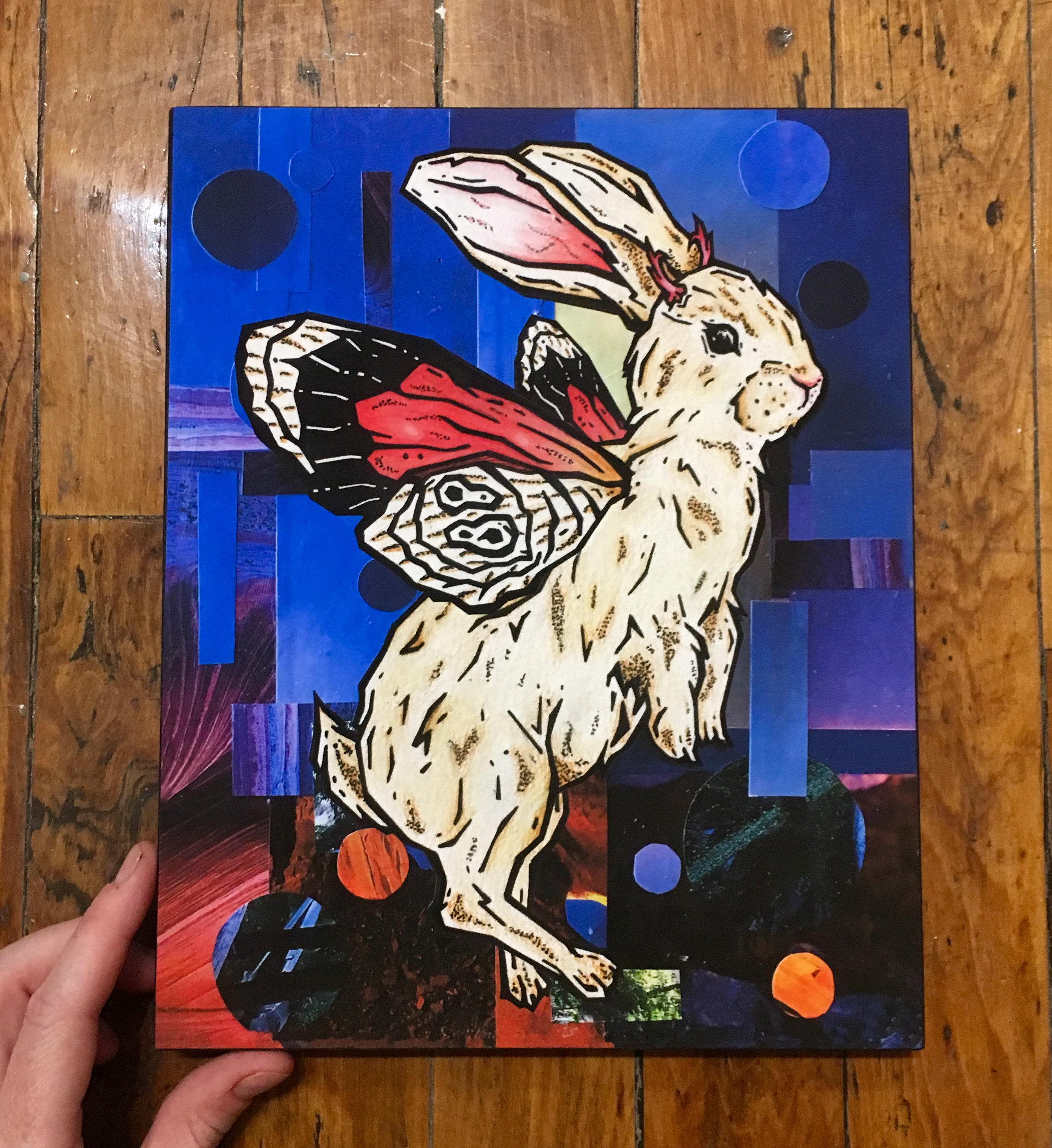 - Printed on textured Aurora White 250 gsm paper and hand mounted onto 3/4" thick birch wood panel. Finished with Liquitex varnish.