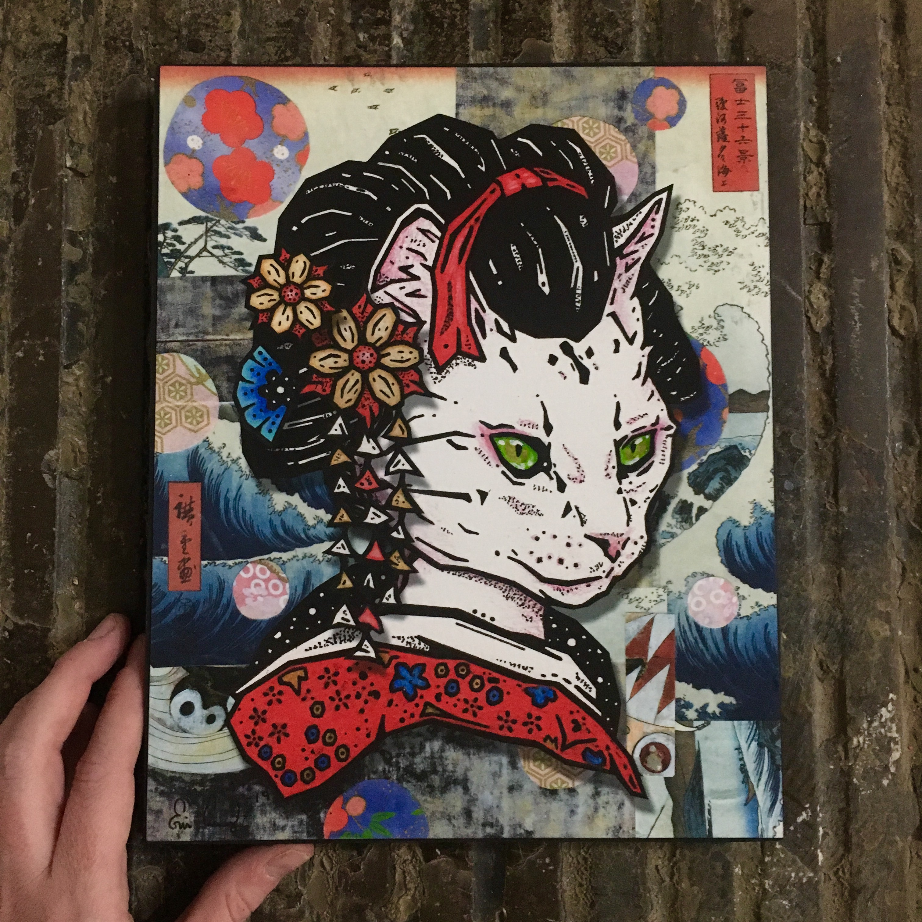 "Geiko" is apart of a series of geisha kitties. I needed to fuse my love of all things cats and the art of the geisha. Hope you like it!