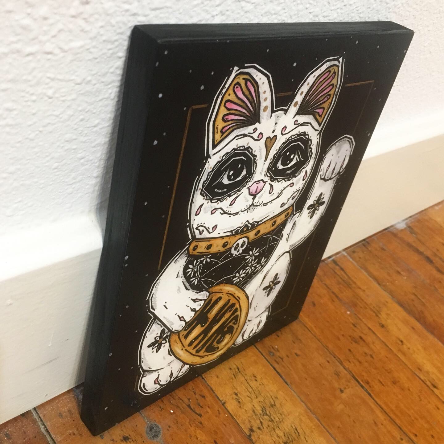 - Printed on textured Aurora White 250 gsm paper and hand mounted onto 3/4" thick birch wood panel. Finished with Liquitex varnish.