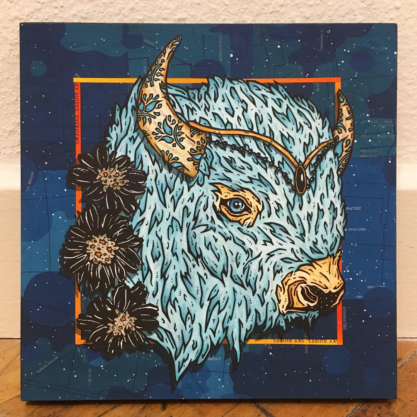 - Printed on textured Aurora White 250 gsm paper and hand mounted onto 3/4" thick birch wood panel. Finished with Liquitex varnish.