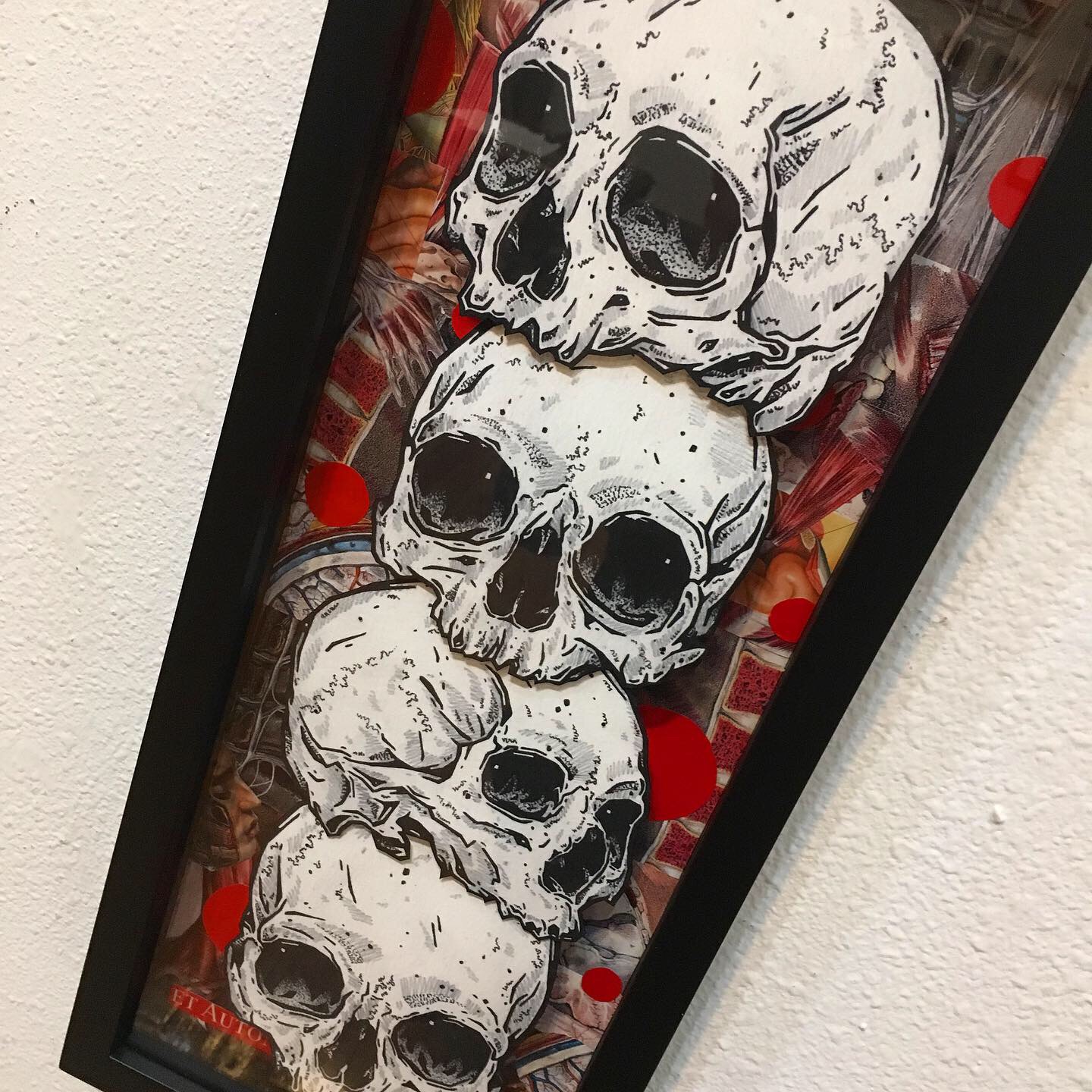 - I love drawing skulls. It's pretty much all I want to do. So a skull tower above some bloody and gory collage just seemed so right.