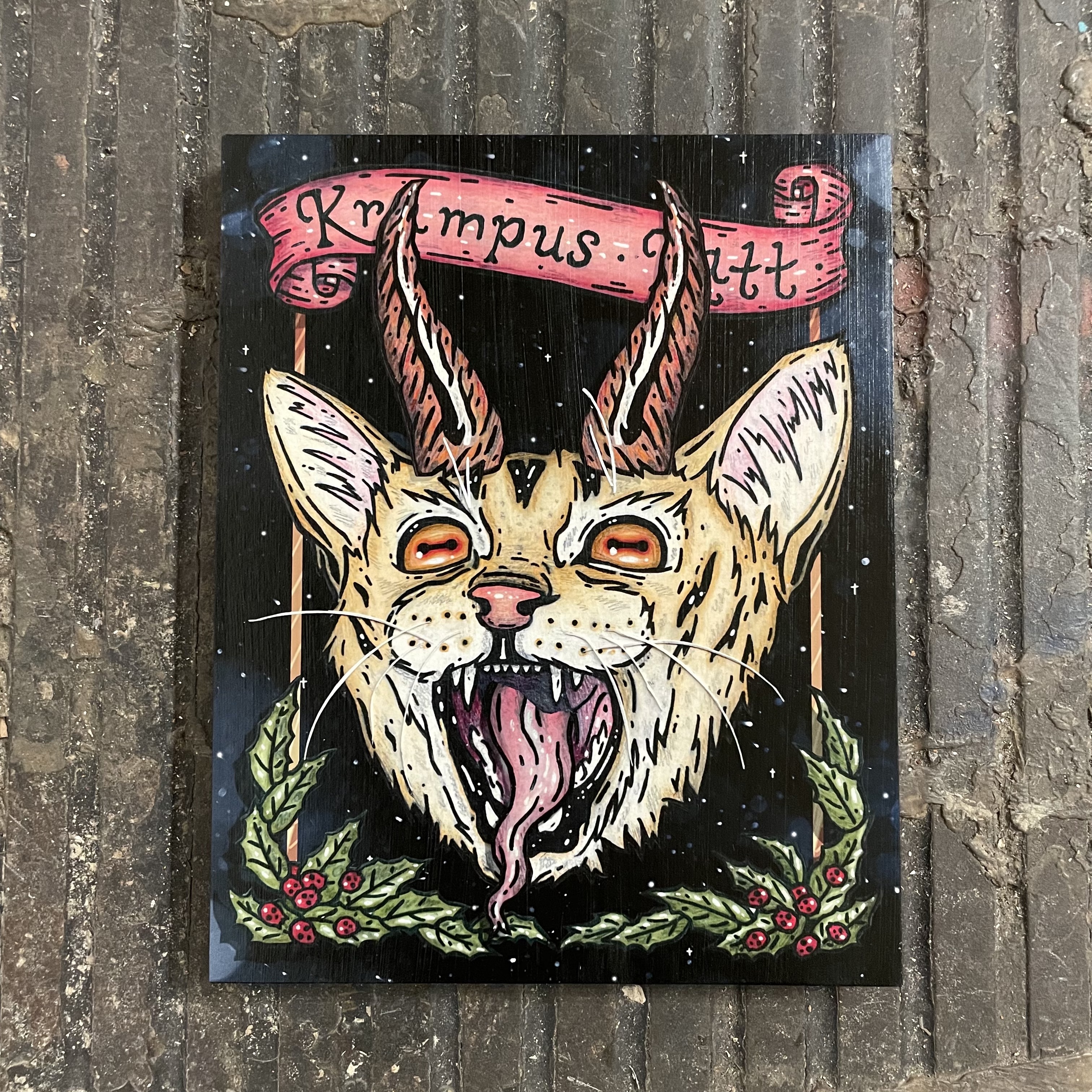 "Krampus Katt" 8x10" Print on Wood